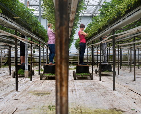 Onze kas is voorzien van moderne en duurzame teelttechnieken, waaronder de inzet van biologische bestrijding, verwarming met een biomassakachel en de omschakeling naar een mobiel teeltsysteem.